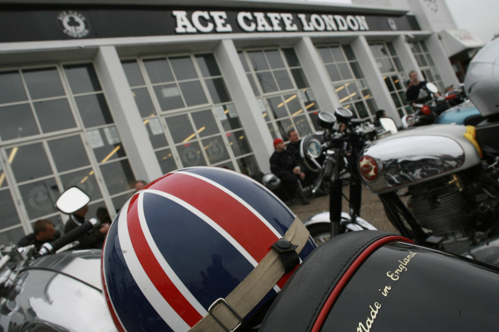 Während in Deutschland Starkregen die Lust aufs Motorradfahren vereitelte, zeigte sich der Süden Englands mit strahlendem Sonnenschein und das Team vom Ace Café konnte an diesem Freitagabend neben der INTERMOT-Delegation noch weitere Gäste aus Deutschland begrüßen. Stilsicher reisten mehrere Fans aus Süddeutschland mit ihren britischen Bikes an, um am „Ace“ einen Zwischenstopp zu machen, bevor es zu einem großen Klassiktreffen in Leicester weiter ging. Auch sie versprachen im kommenden Jahr die INTERMOT und vor allem die Custom-Halle 10 zu besuchen.