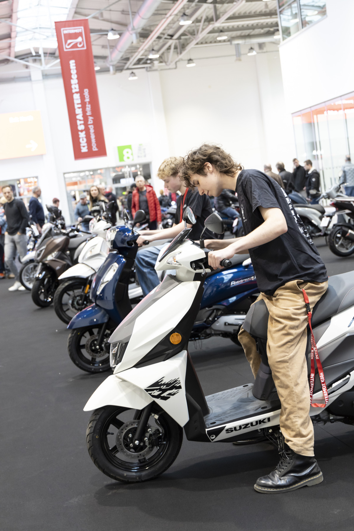 Nicht nur beim jungen Publikum stieß besonders die Ausstellung der 125 cm³-Fahrzeuge im Boulevard der Messe auf ein breites Interesse. 50 aktuelle Modelle konnten dort bestaunt werden, eine markenübergreifende Beratung gab es bei Interesse noch dazu.