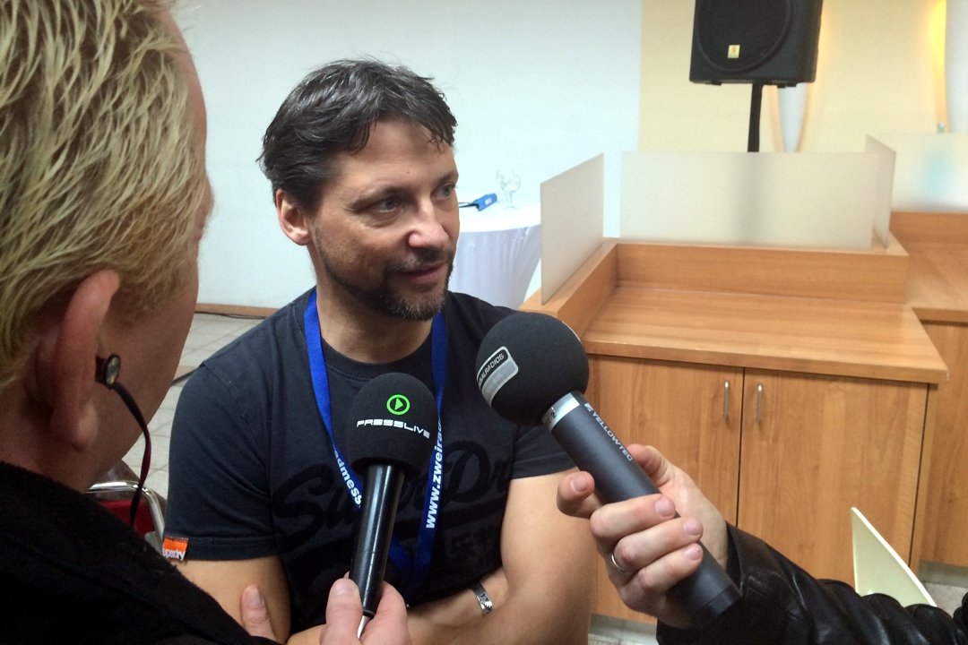 Messeorganisator Hans-Jürgen Weigt begrüßte den Schauspieler Patrick Bach (48, Silas, SoKo, Großstadtrevier), der die Möglichkeit nutzte, sein ambitioniertes Ruhrpott-Biker Serienprojekt „Rebels of Steel“ zu promoten. Auch wenn in den gezeigten Pilot-Trailern zum Film amerikanisches Schwermetall im Vordergrund steht, ist Patrick Bach privat seit 20 Jahren mit einer Yamaha V-Max unterwegs.
