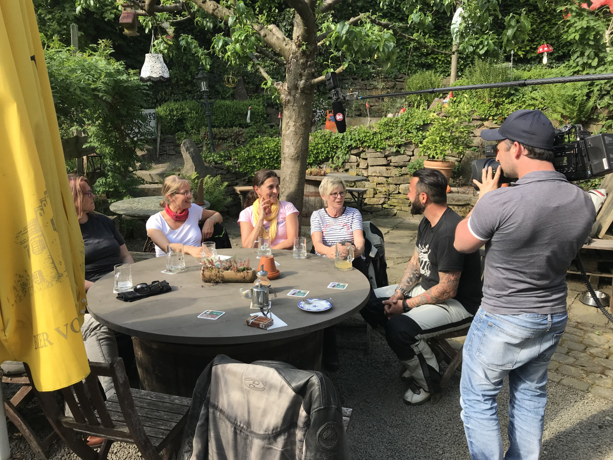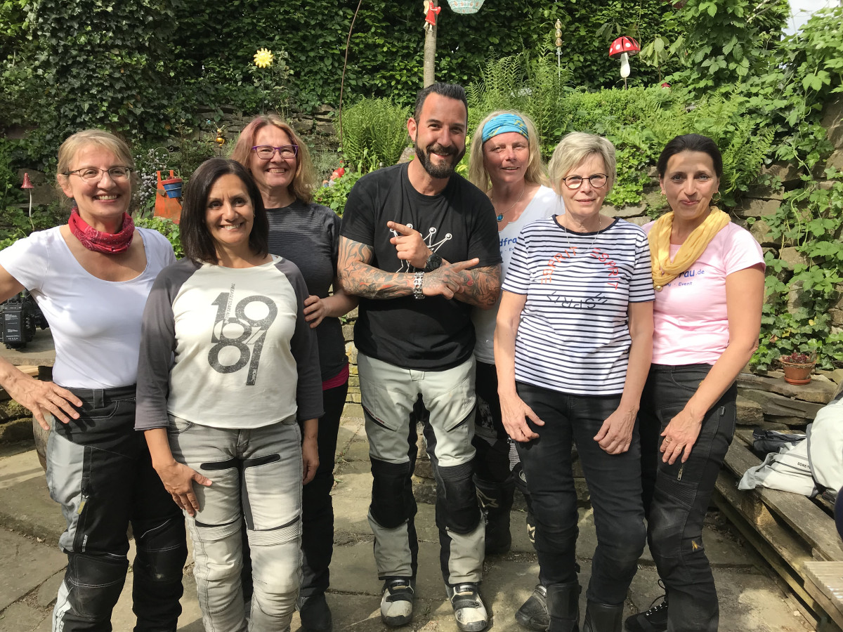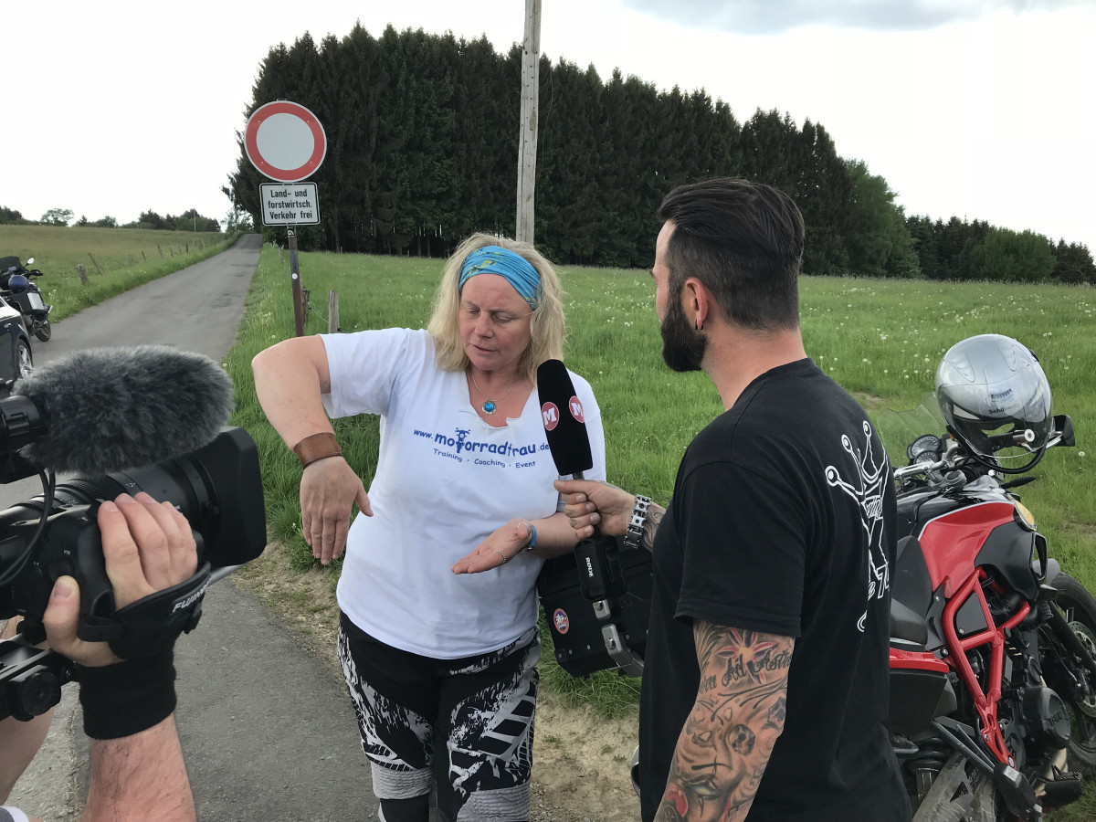 Schließlich startete Jens mit Astrid Althoff zu einer Tour durchs Bergische Land. Die mit ihrer Firma „motorradfrau.de“ in Lindlar beheimatete Motorradtrainerin vermittelt Anfängern und Wiedereinsteigern Sicherheit beim Fahren und beim Handling mit Motorrädern. Sie weiß daher nahezu alles über den sicheren Einstieg zum Saisonstart oder nach längerer Pause. Doch darüber hat nicht nur sie mit Jens gesprochen, sondern auch ehemalige Teilnehmerinnen ihrer Kurse mitgebracht.