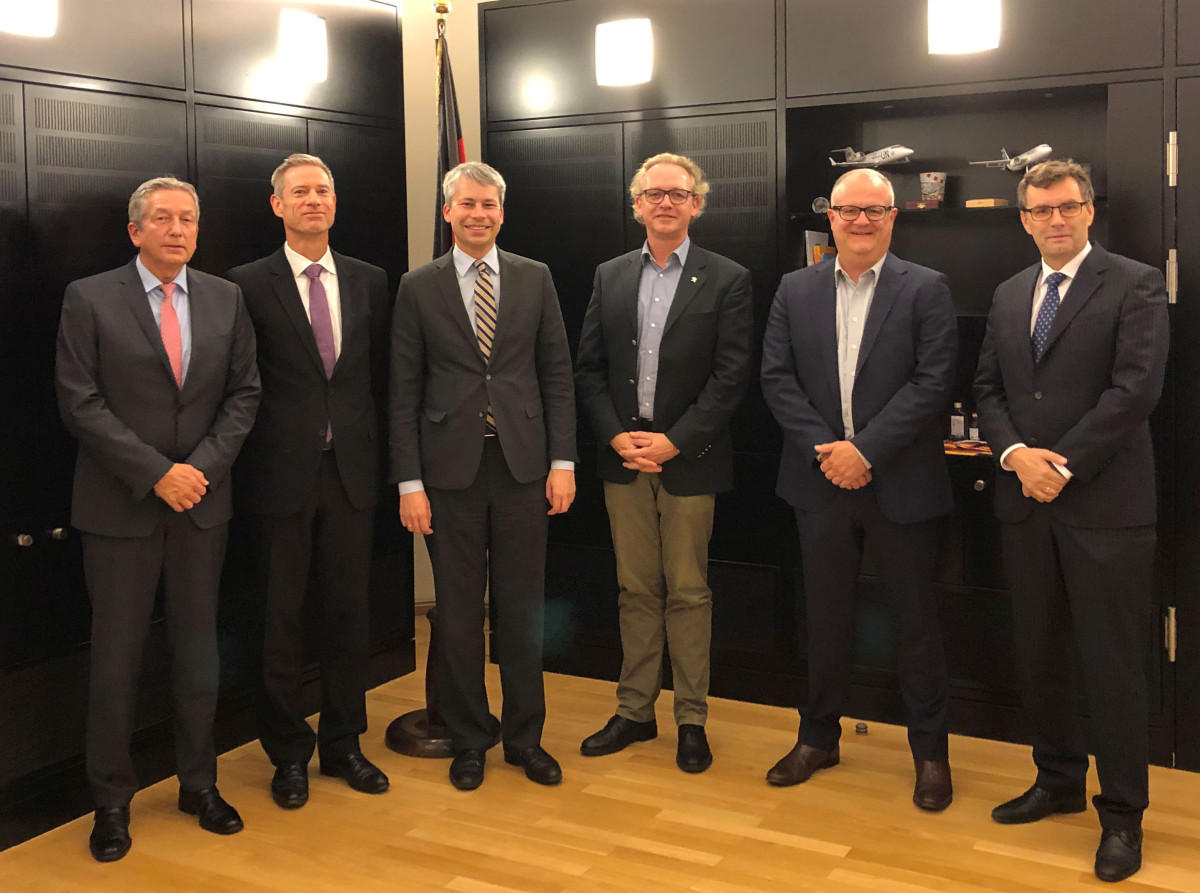 Mittwochabend in Berlin, Bundesministerium für Verkehr und digitale Infrastruktur (BMVI). Der parlamentarische Staatssekretär und Bundestagsabgeordnete Steffen Bilger (CDU) empfängt das Präsidium (Henning Putzke, BMW Motorrad, Jan Breckwoldt, Peugeot Motocyles und Ronald Kabella, Bucher AG/Motorex) sowie die Geschäftsführung des IVM. Jürgen Höpker-Seibert (Kawasaki Motors Europe) musste terminbedingt absagen.